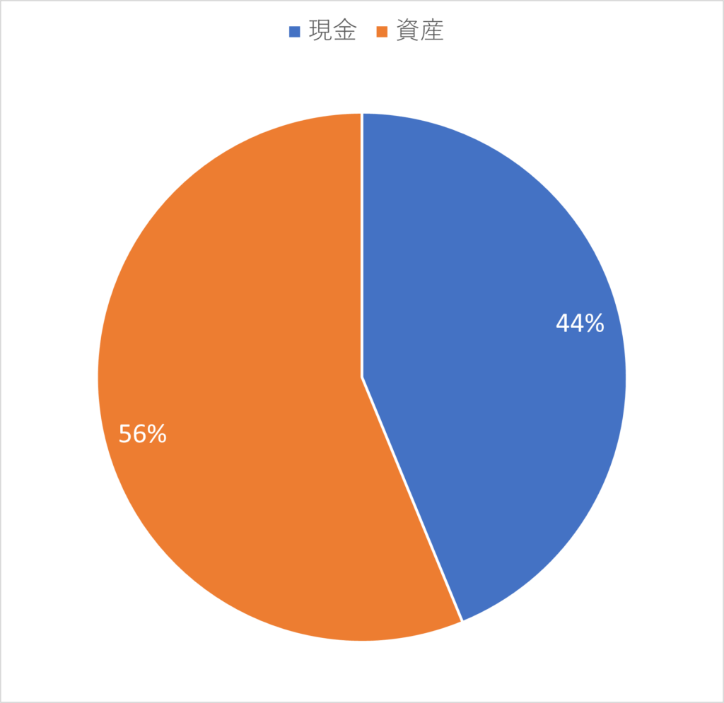 2025年12月現在の運用割合は資産:現金=56:44である。