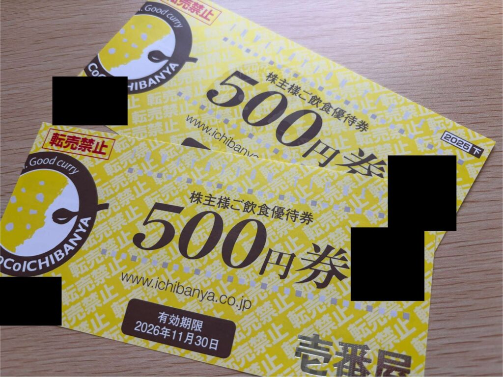 今回は、壱番屋の株主優待券を使う。100株保有で年2回1,000円(合計:2,000円)の優待券が届く。(2026.1時点)